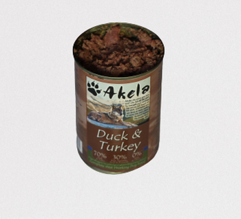 Akela Duck & Turkey Recipe je mokra hrana, ki temelji na 70 % račjega in puranjega: lahko prebavljivega vira beljakovin, ki je odlična izbira za pse z alergijami ali občutljivostjo na bolj običajne vire mesa. Ker gre za pusto meso, se izdelek odlično obnese tudi pri psih s prekomerno težo, aktivnih psih in vseh ljubljenčkih, ki potrebujejo beljakovinsko bogato hrano.