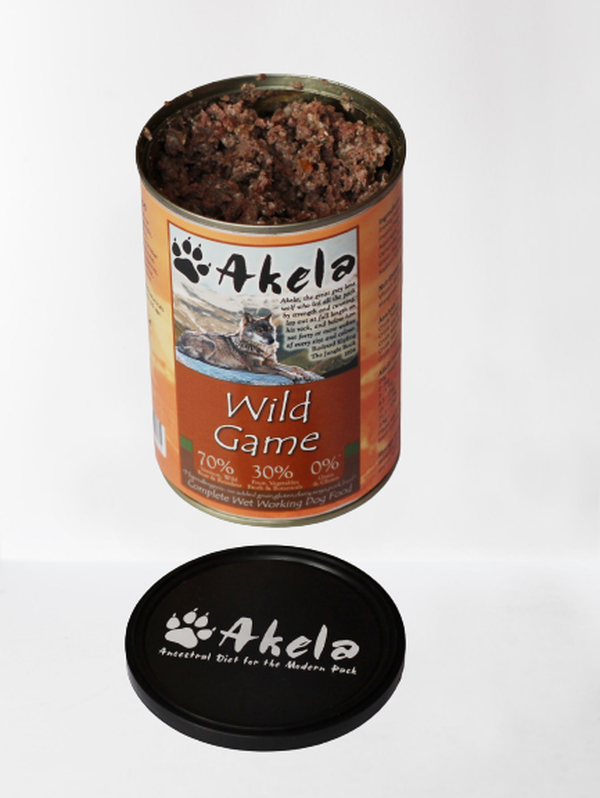 Akela Wild Game Recipe je mokra hrana, ki temelji na 70 % divjačine: lahko prebavljivega vira beljakovin, ki je odlična izbira za pse z alergijami ali občutljivostjo na bolj običajne vire mesa. Ker gre za pusto meso, se izdelek odlično obnese tudi pri psih s prekomerno težo, aktivnih psih in vseh ljubljenčkih, ki potrebujejo beljakovinsko bogato hrano.