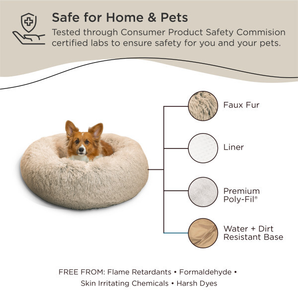Postelja za psa Dount Shag je zasnovana tako, da vašemu ljubljenčku zagotavlja maksimalno udobje. Mehka prevleka iz umetnega krzna je izredno prijetna, vrhunsko polnilo pa se prilagaja telesu psa in tako razbremeni kosti ter sklepe, hkrati pa je odporno na vodo in umazanijo. Rahlo dvignjeni robovi vašemu psu nudijo občutek varnosti in služijo kot udoben naslon za glavo.