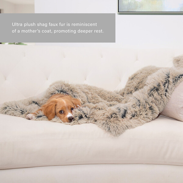 Shag Pet Throw Blanket bo hitro postala najljubša odeja vašega psa. Narejena je iz ultra-mehkega umetnega krzna, ki posnema toplino in teksturo materine dlake – to psom zagotavlja občutek varnosti in pomirjenosti. Je lahka, a topla, zato je odlična izbira skozi vse leto.