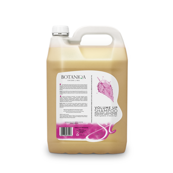 Šampon Volume Up vsebuje naravne sestavine, ki dodajo volumen dlaki in obenem preprečujejo nastanek vozlov. Formula vsebuje poseben ekstrakt bombaža, ki doda prostor med posameznimi prameni dlake, kar pomaga ohranjati teksturo in volumen. Končni rezultat uporabe je mehka, sijoča in puhasta dlaka.