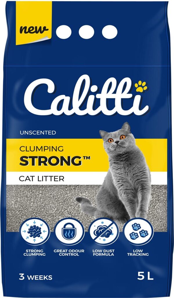 Pesek za mačje stranišče Calitti STRONG je zasnovan tako, da se ob opravljanju potrebe sprime v grudice, kar omogoča enostavno, hitro in higiensko čiščenje.
