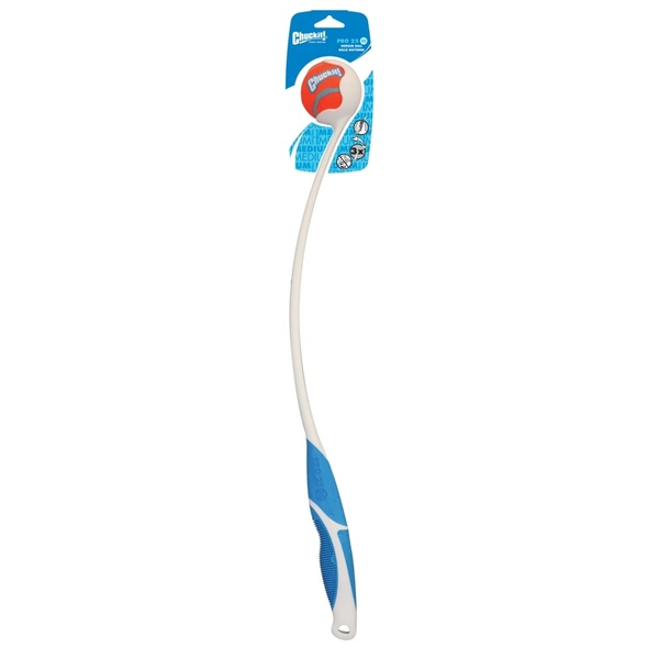Chuckit! Pro Launcher spremeni igro prinašanja v pravo zabavo – žogo lahko vržete izredno daleč, z manj truda, vaš pes pa bo užival v dolgih, hitrih lovih. Posebna oblika vam omogoča, da žogo pobirate neposredno s tal, ne da bi se je morali dotikati z roko ali se sklanjati.