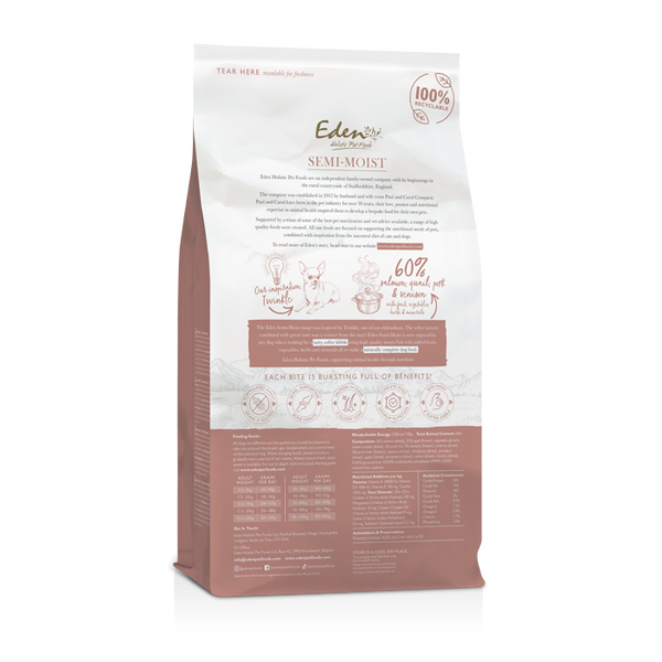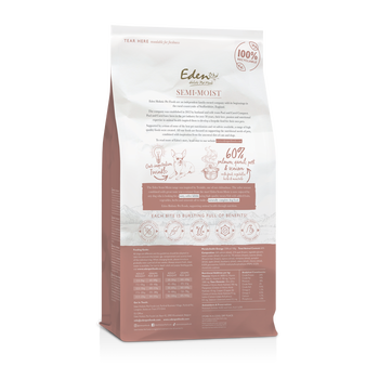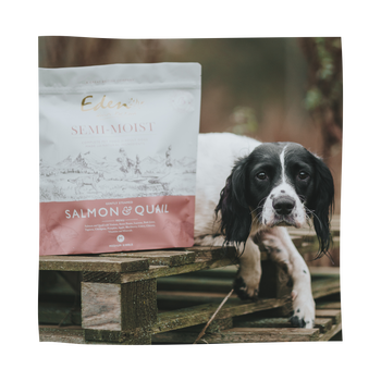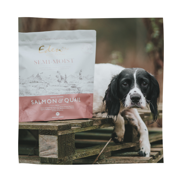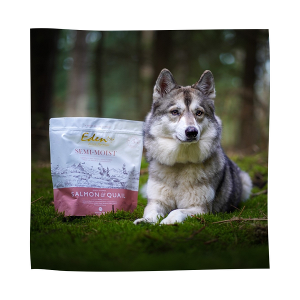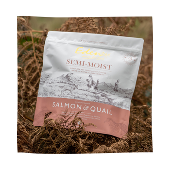 Hrana je zaradi višje vlažnosti in intenzivnega okusa odlična tudi za manj ješče pse, za tiste, ki težje grizejo, manj pijejo, imajo težave s prebavo ali pretiranim izločanjem kisline. Eden Pet Foods polmehka hrana z lososom in prepelico vsebuje najboljše sestavine, ki so ključne za optimalno zdravje.