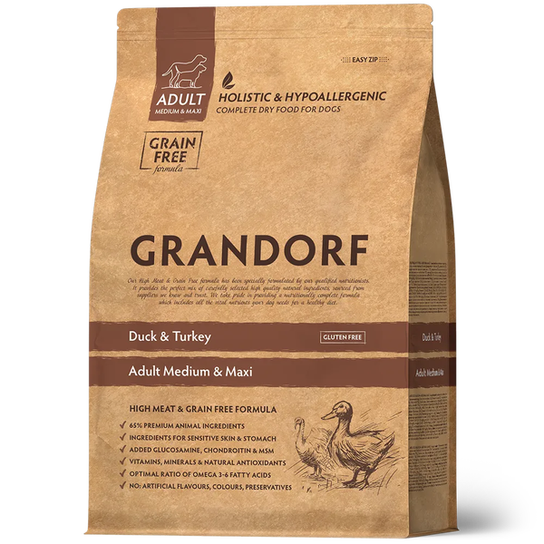 Grandorf Duck & Turkey je ustvarjena posebej za pse, ki potrebujejo nežno, a hranljivo prehrano, bodisi zaradi alergij ali občutljive prebave. Vsebuje visok delež puranjega in račjega mesa, ki sta lahko prebavljiva vira beljakovin in vsebujeta tudi ostala pomembna hranila, ki podpirajo zdravje vašega ljubljenčka.