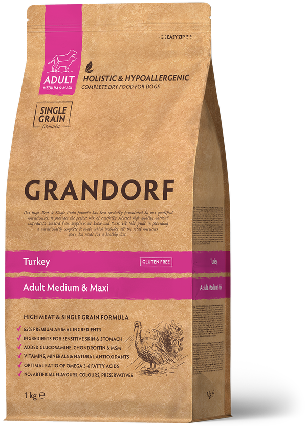 Grandorf Turkey je ustvarjena posebej za pse, ki potrebujejo nežno, a hranljivo prehrano, bodisi zaradi alergij ali občutljive prebave. Je monoproteinska in vsebuje visok delež purana, ki je lahko prebavljiv vir beljakovin in vsebuje tudi ostala pomembna hranila, ki podpirajo zdravje vašega ljubljenčka.