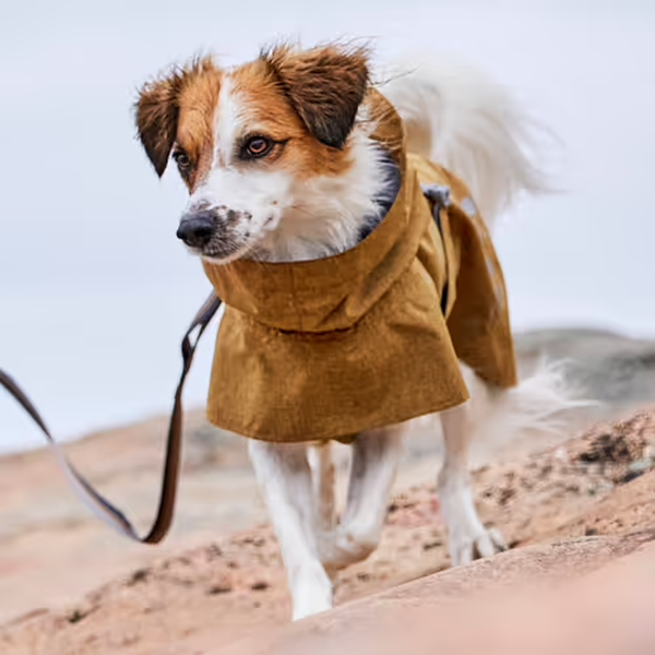 Zahvaljujoč inovativnemu kroju, ta nepremočljiv plašček za psa tudi med gibanjem ostane na svojem mestu. Velikost je enostavno nastavljiva za udobno prileganje, nastavljivi in raztegljivi elementi pa poskrbijo za udobje vašega psa.