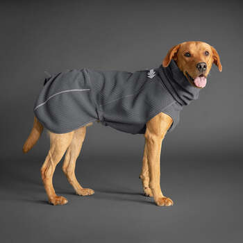 Posebnost plaščka je notranja folijska "jersey" podloga, ki odseva telesno toploto nazaj k psu in spodbuja krvni obtok. Gre za preverjeno tehnologijo iz modela Extreme Warmer, zdaj pa je na voljo tudi v tem udobnem in lažjem puloverju. Zunanji sloj iz recikliranega flisa je mehak, trpežen in tih med gibanjem, kar je še posebej pomembno za pse, ki so občutljivi na zvoke oziroma šume.