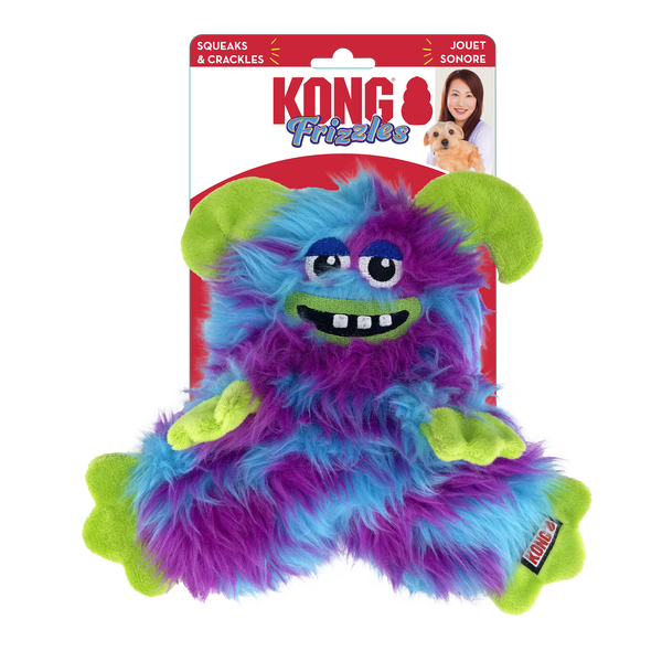 Igrača Kong Frizzles Razzle je popolna kombinacija mehkobe in zabave. Ustvarjena za pse, ki obožujejo igro, raziskovanje in crkljanje. Igrača ima dolgo, mehko in kosmato plišasto dlako, ki kar vabi k igri, vlečenju ali preprosto k temu, da se pes nanjo nasloni in zadrema.