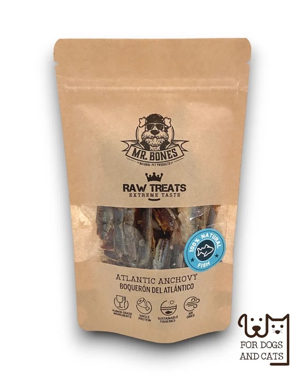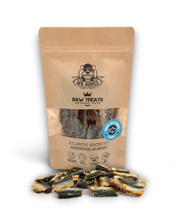 Inčuni, uporabljeni v Mr. Bones Raw Treats Atlantic Anchovy, prihajajo iz atlantskega oceana. V sodelovanju z lokalnimi ribiči ne zagotavljamo le najvišje kakovosti surovin, temveč tudi zmanjšujemo ogljični odtis proizvodnje.