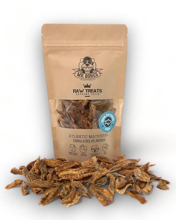Skuše, uporabljene v Mr. Bones Raw Treats Atlantic Mackerel prihajajo iz atlantskega oceana. V sodelovanju z lokalnimi ribiči ne zagotavljamo le najvišje kakovosti surovin, temveč tudi zmanjšujemo ogljični odtis proizvodnje.