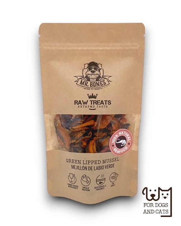 Narejeni so iz 100 % mesa zelenouste školjke, ki je naravno bogata z vitamini, minerali in antioksidanti. Vsebuje glukozamin in hondroitin, ki krepita kosti, sklepe ter hrustanec. Priboljški predstavljajo tudi odlično podporo imunskemu sistemu. Ker ne vsebujejo nobenih umetnih barvil, arom, konzervansov ali drugih dodatkov, se super obnesejo tudi pri občutljivih ljubljenčkih in alergikih.
