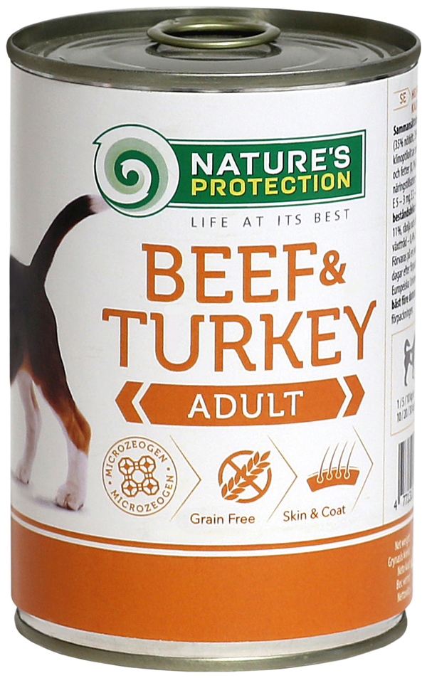 Glavna vira beljakovin v tej hrani sta govedina in puran – kombinacija, ki zagotavlja uravnoteženo oskrbo z esencialnimi aminokislinami, ki jih pes potrebuje za zdravo in dolgo življenje. Govedina je hranilno bogata in okusna, puran pa lahek in enostavno prebavljiv, zato je hrana primerna tudi za pse z občutljivo prebavo.