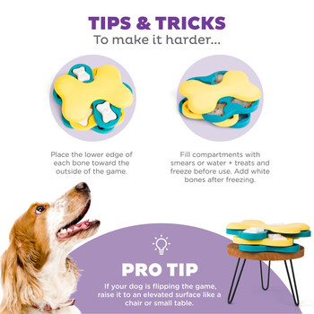Interaktivna igrača za psa je narejena tako, da ljubljenčka spodbuja k razmišljanju in uporabljanju instinktov. Vaš pes je primoran dobro napeti svoje možgane, da bi prišel do želene nagrade. 15 minut takšne igre bo vašega psa utrudilo bolj, kakor 30 minut lovljenja žoge.