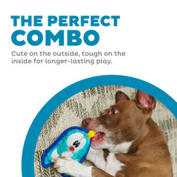 Kaj torej izbrati? Odkrijte linijo igrač Invincibles, ki je bila posebej zasnovana za pse, ki se igrajo nekoliko bolj grobo. Gre za pasje igrače, narejene iz trpežnega materiala (K-9 TUFF GUARD) v kombinaciji z dvojnimi šivi, zgornjo plast izdelka pa pokriva mehek plišast material, ki je za psa izjemno prijeten.