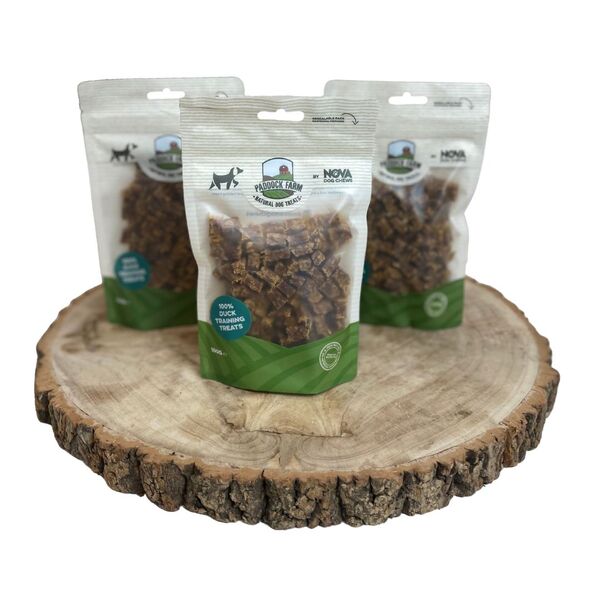 Veliko komercialnih pasjih priboljškov vsebuje umetne dodatke, žita in druge sestavine, ki lahko porušijo ravnovesje v telesu psa ter vplivajo na njegovo zdravje. Po drugi strani pa so Paddock Farm 100% Duck Training Treats narejeni iz čistega račjega mesa, kar pomeni, da vaš pes dobi kakovosten in naraven vir hranil brez nepotrebnih dodatkov.